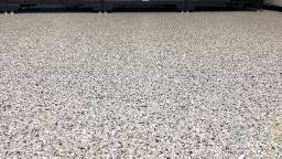 After the consultation, they decided on the Terra Chip floor coating system (with a finished dry thickness of 36 mils) sporting the Pebble Beach color chips, named after their favorite vacation destination.